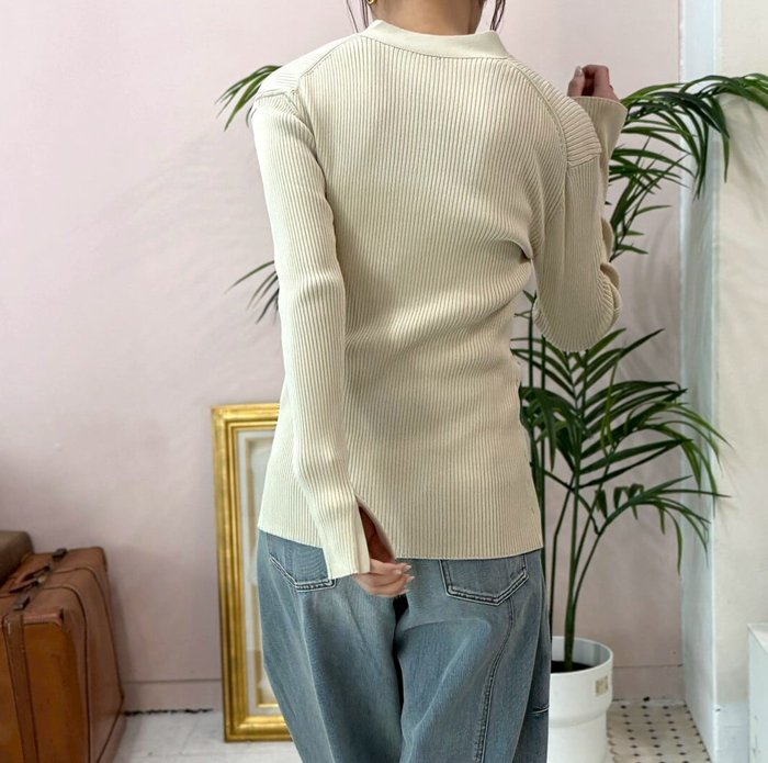ジャケットのインナーとしてももたつかず、コーディネートをきれいにまとめてくれる一枚です。