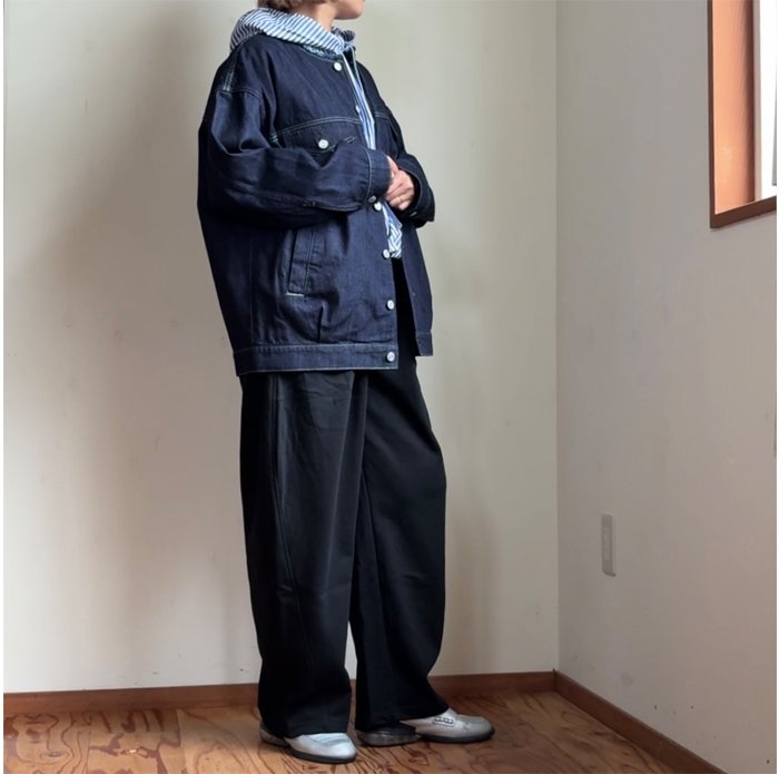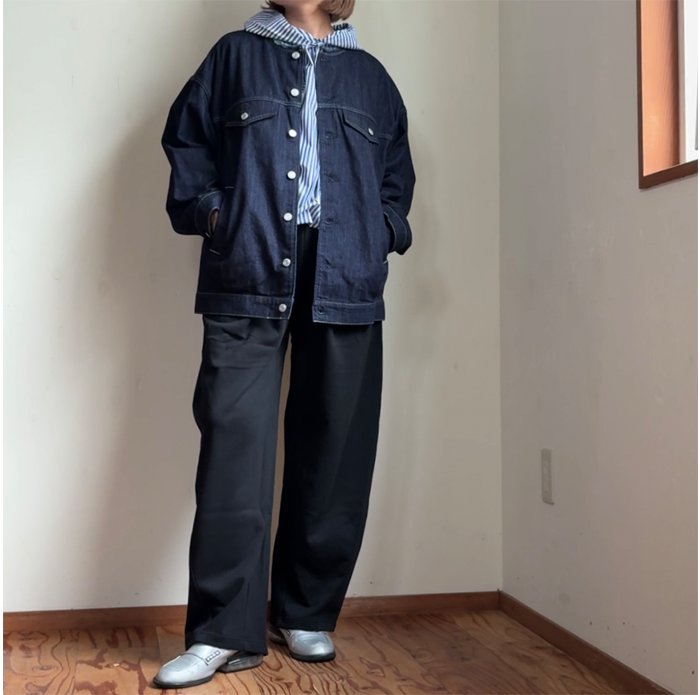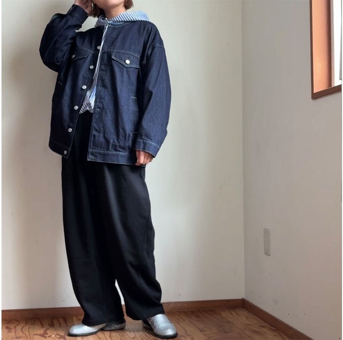 ゆったりワイドシルエットなのに、オチ感のある柔らかデニムで軽やかに羽織れちゃいます◎