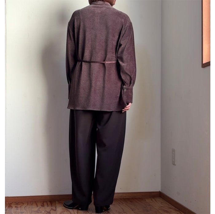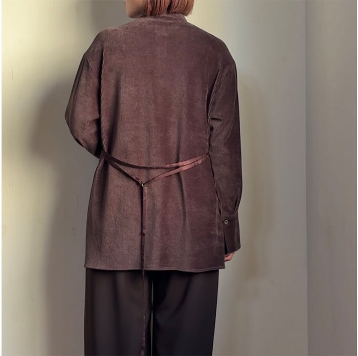 衿裏とカフス裏、別ベルトにはサテンを使用し、抜け感をプラス。