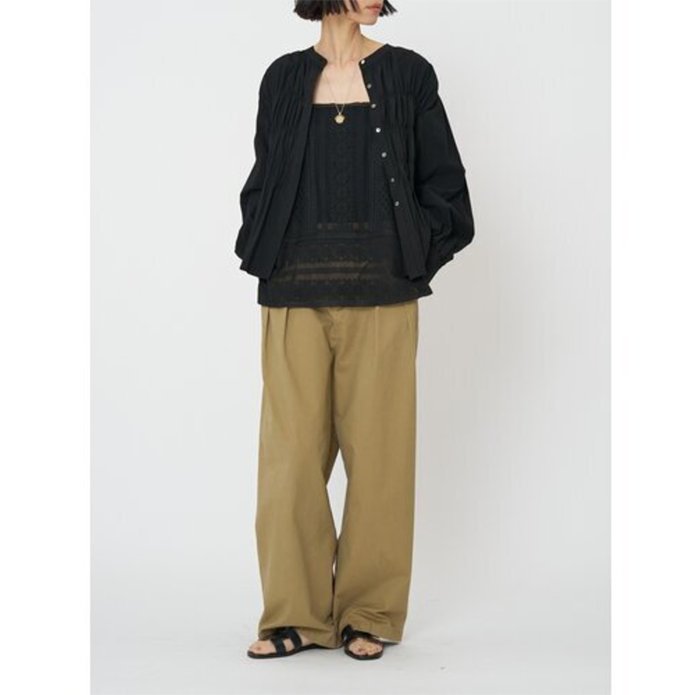 CHIGNONならではの丸みのあるテーパードシルエットで、キーマテリアルであるレースや甘めなブラウスと合わせると、王道かつ新鮮な、こなれたMIXスタイルをお楽しみいただけます。