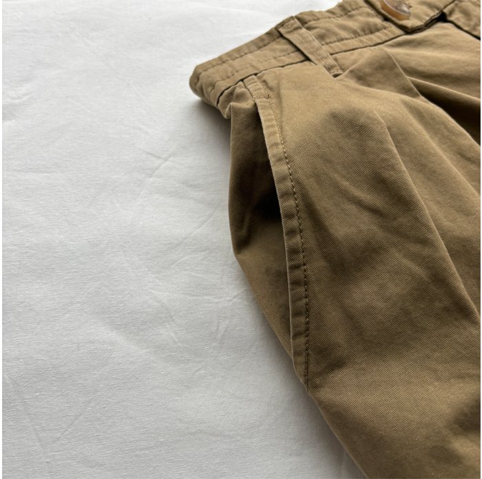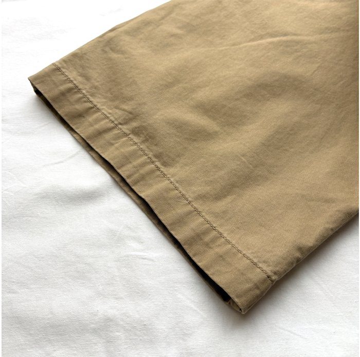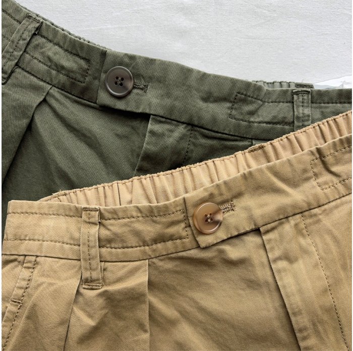 クリアな表面感のコットンツイルを使用し、製品バイオストーン加工を施したマルチユースなチノパンツ。