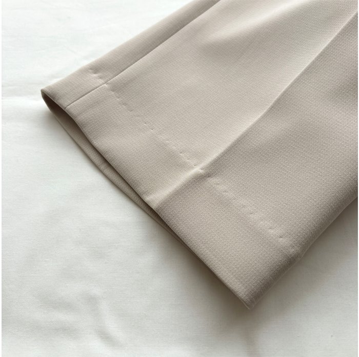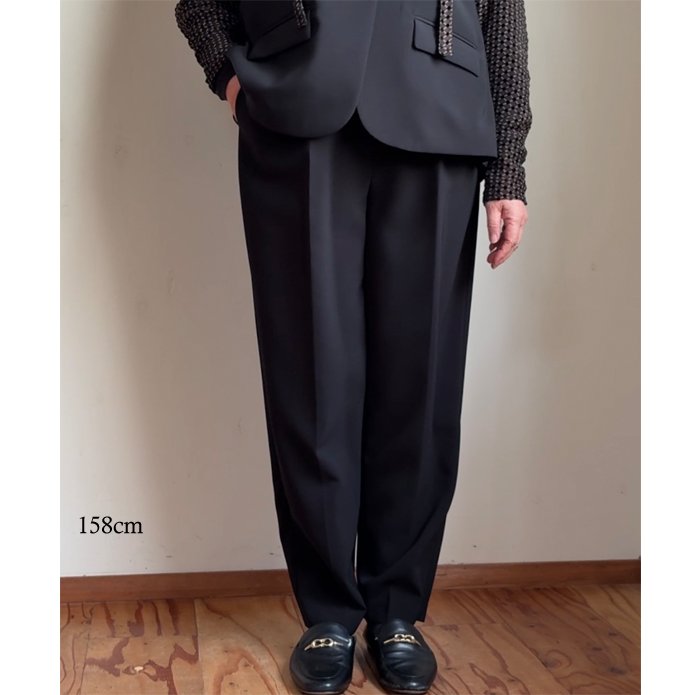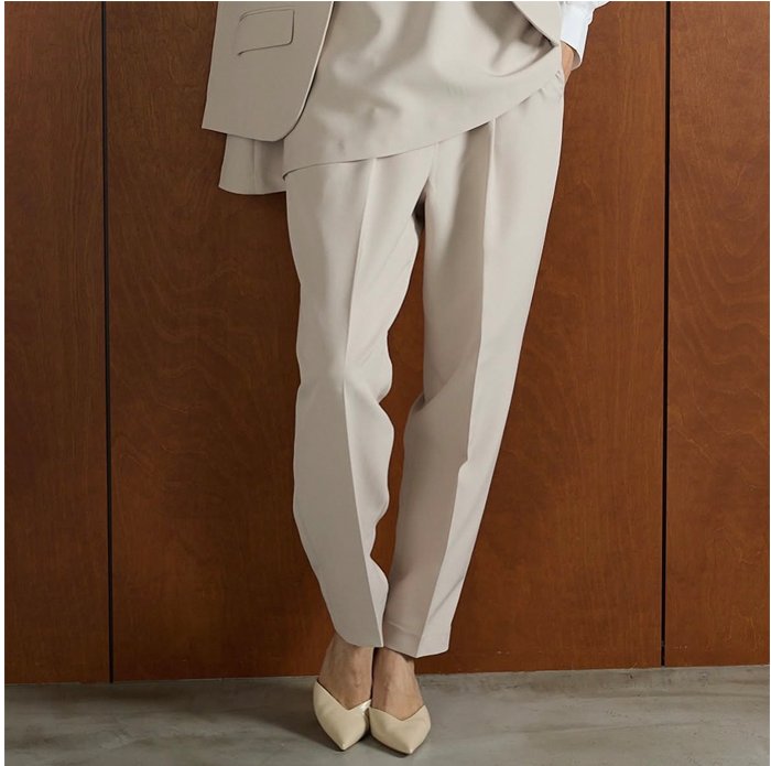 テーパードのスッキリとしたシルエットやセンタープレスが美しく、程よくストレッチの効いた生地で、デイリーユースしやすい一着になっています。