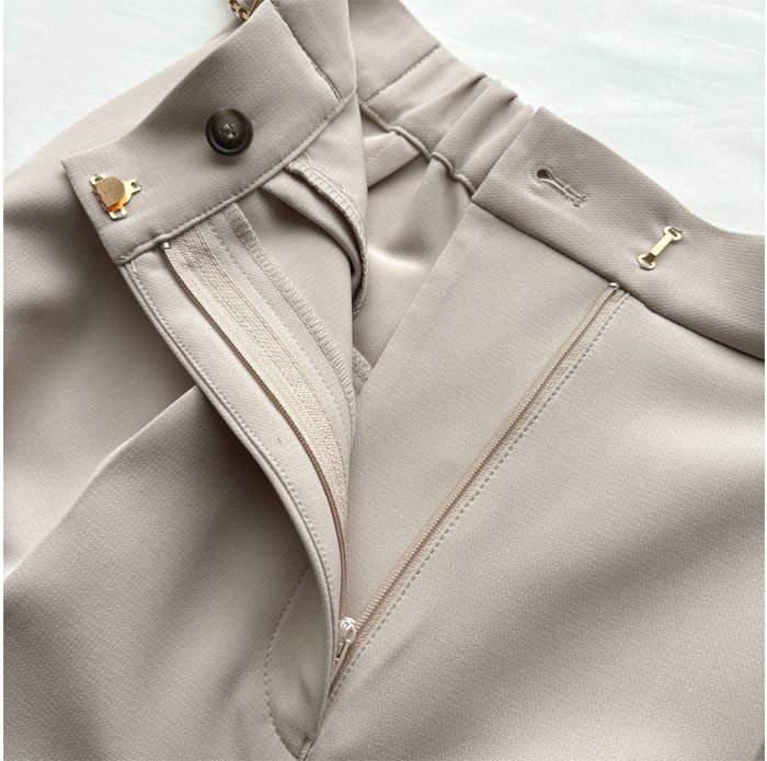 腰回りはゆとりを持たせ膝下を細く設定しているので、細見えするシルエットでスタイルアップにも繋がり、チュニックやボリュームのあるトップスにもバランス良く合わせることが可能。