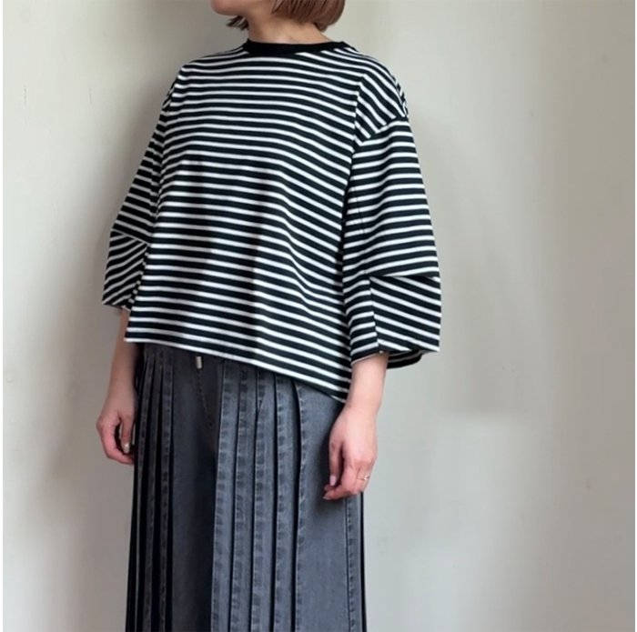 CYNICAL シニカル ボーダー コンプレッションジャージー コクーン袖プルオーバー 610-95525