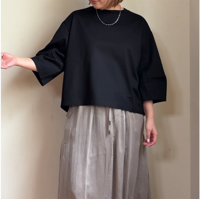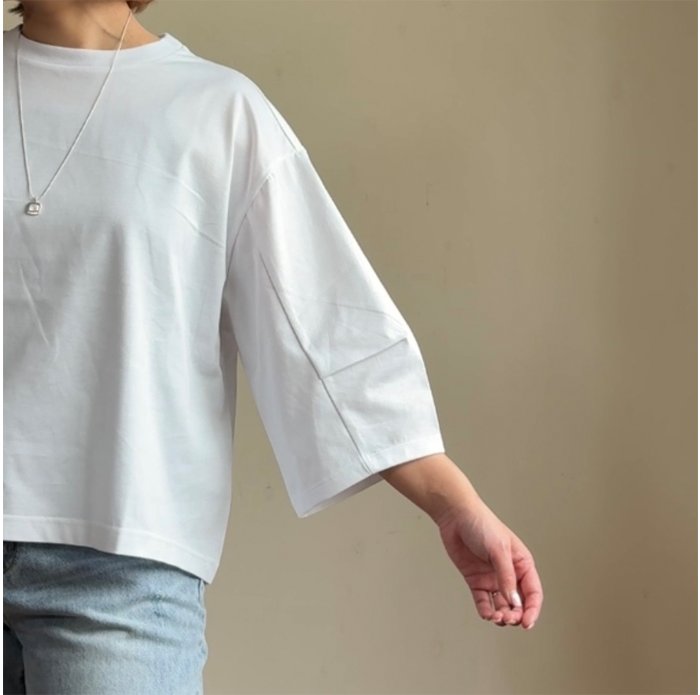 超ハイゲージで編立てたハリ感が特徴的なカットソーです。