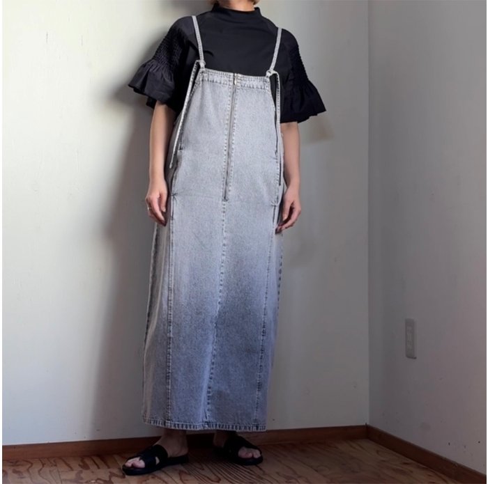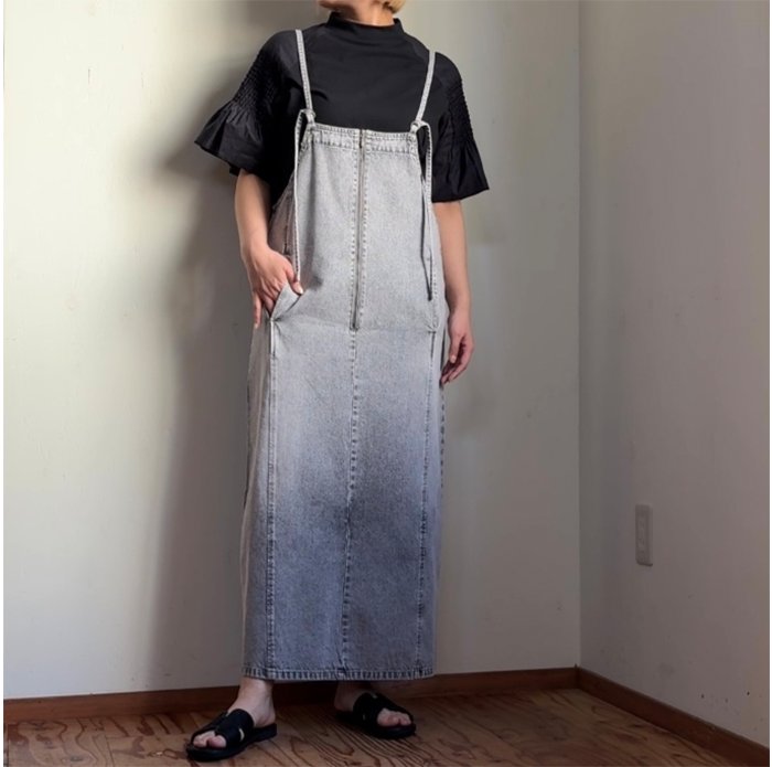 軽く柔らかい質感のミドルオンスデニムを使用したジャンパースカート。