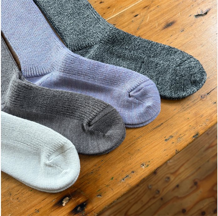 白度・強度・バルキー性に優れた、ニュージーランドメリノウールで編み上げた靴下。