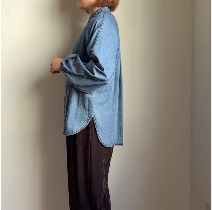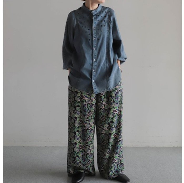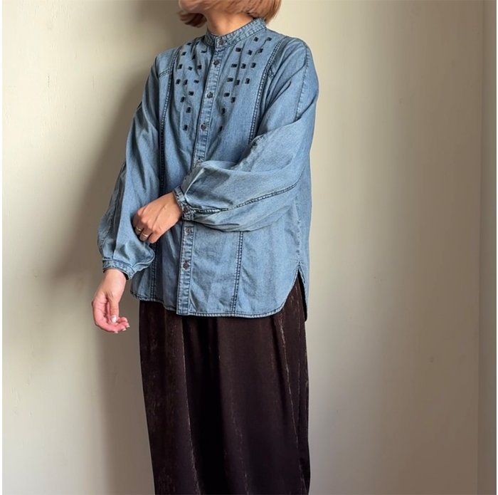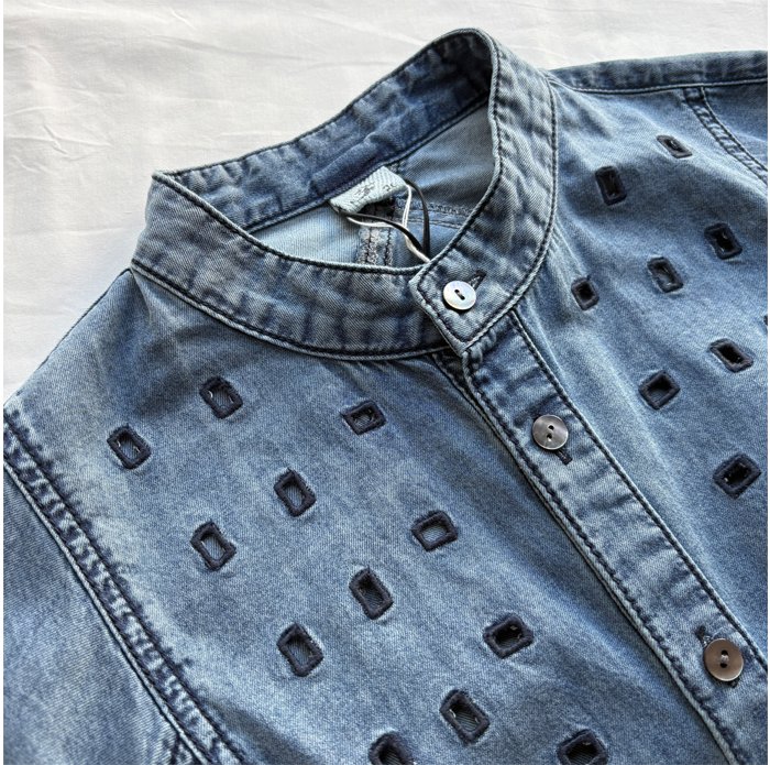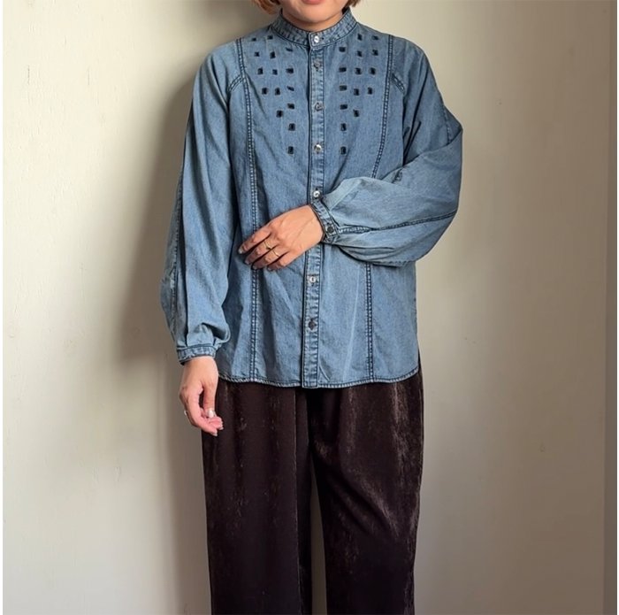 FIL DE FER フィルデフェール カットワークデニム スタンドネックブラウス 10-1-06-207-5-2