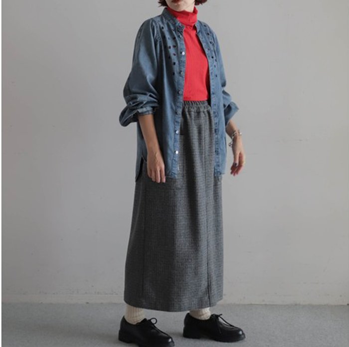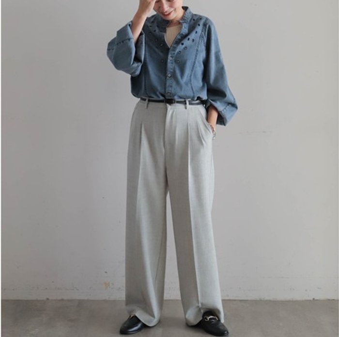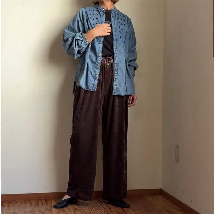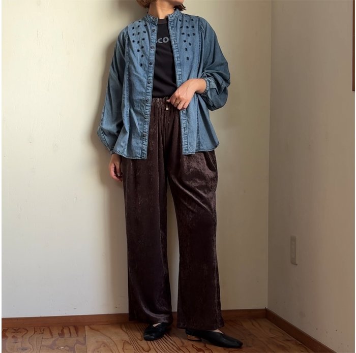 デニム地トップスをFIL DE FERらしくアレンジ。