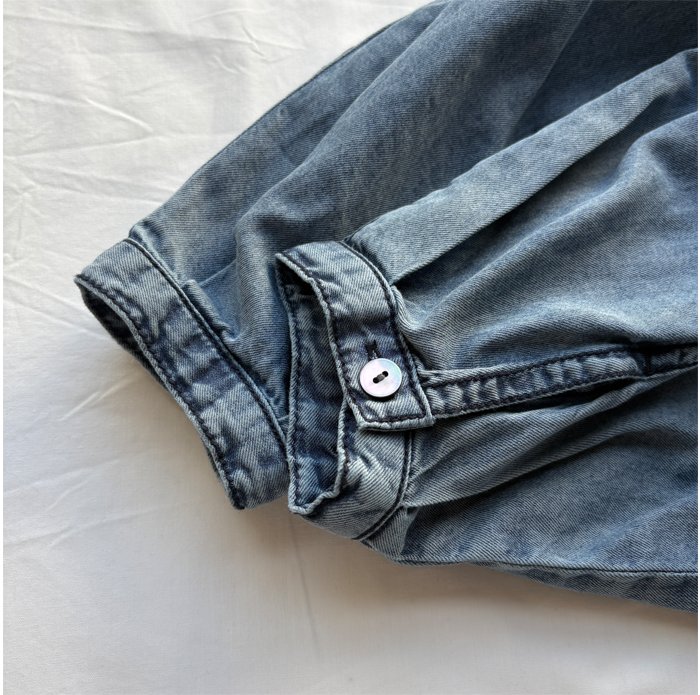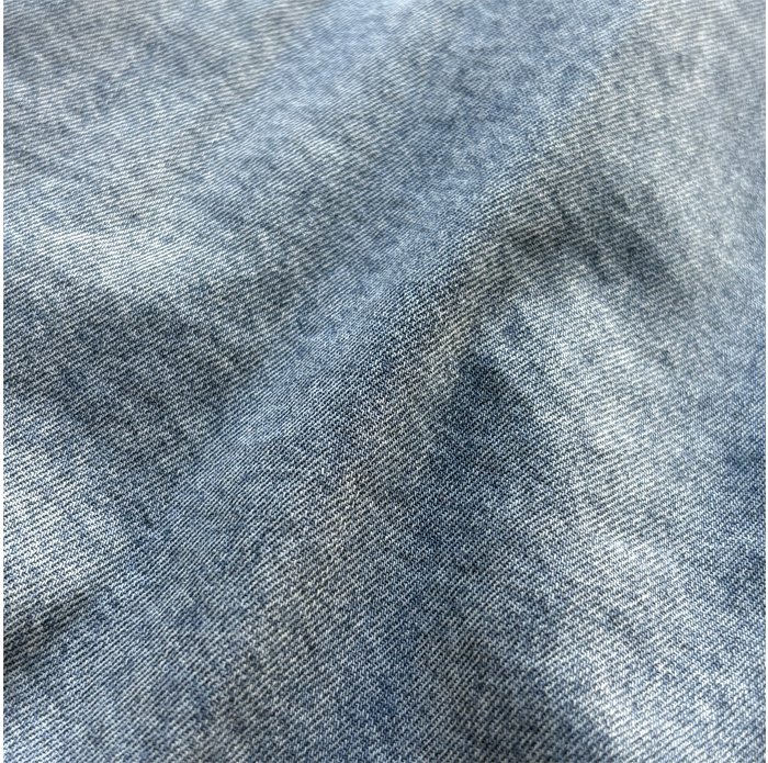 ケミカルウォッシュ加工を施したことによる、色の濃淡から生まれる表情が魅力。