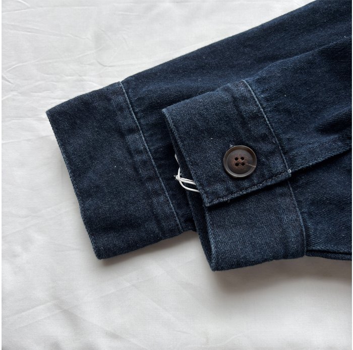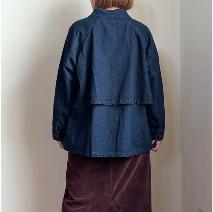 やわらかな風合いのデニム地を使用した、フラップデザインのジャケット。