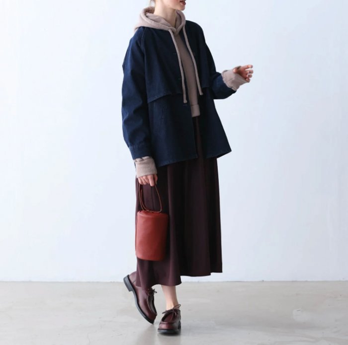 ルーズな印象になりすぎないよう、首元はマオカラーを採用しメリハリのあるデザインに仕上げました。