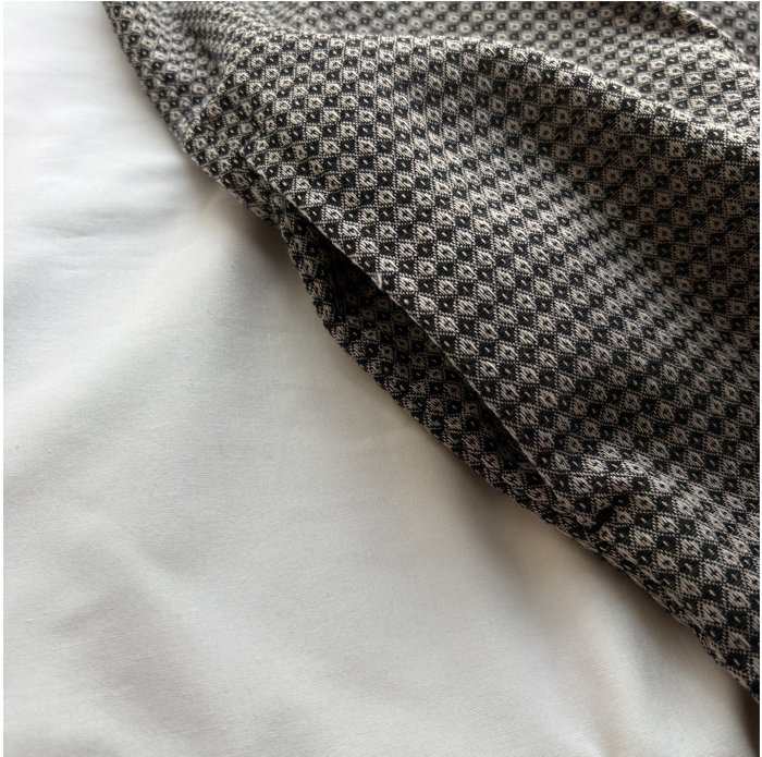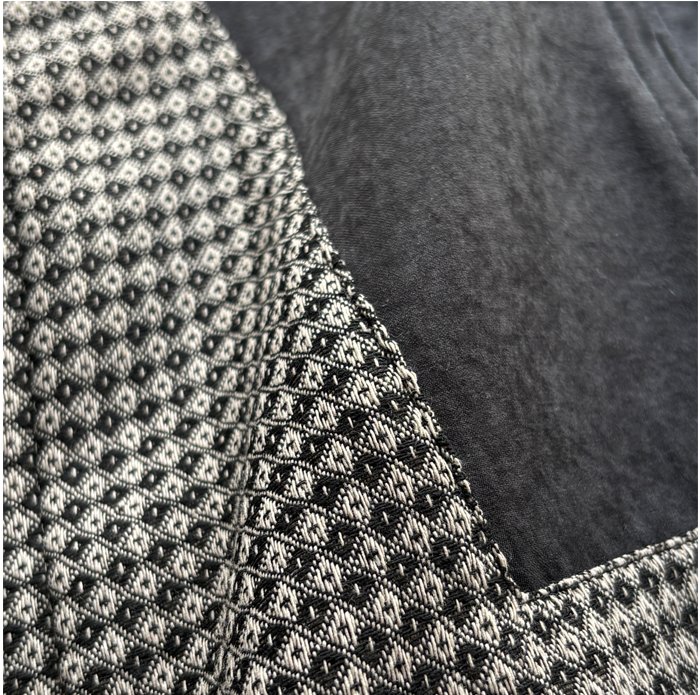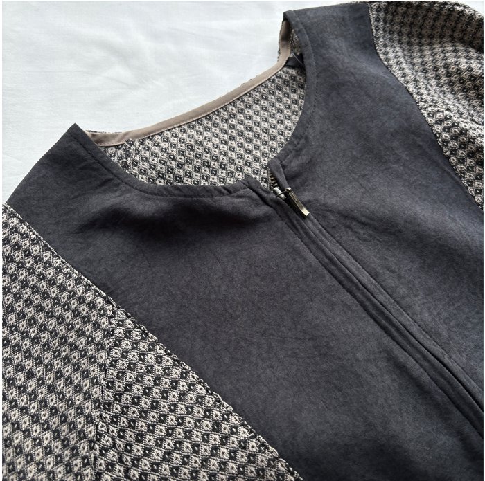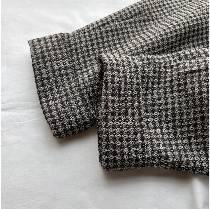 無地の生地をコンビ使いすることで印象を引き締めています。