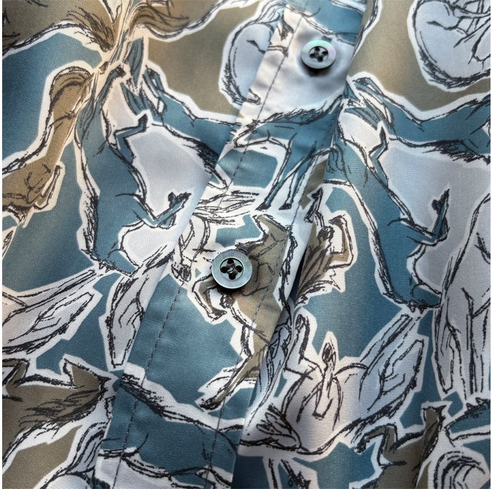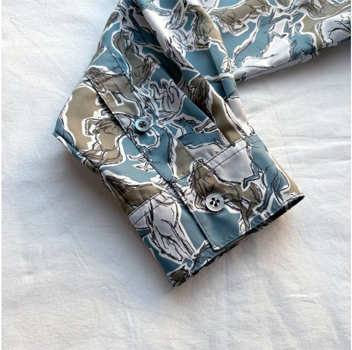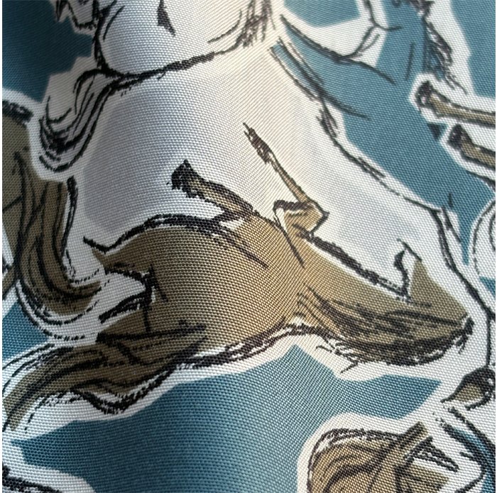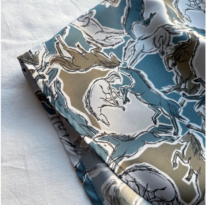 スケッチ風に描かれた馬を組み合わせた、オリジナルのプリント生地を使用。