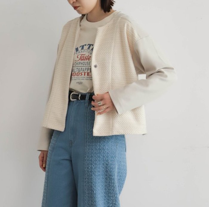 ショート丈なので、バランスよく全体を引き締めてくれます。