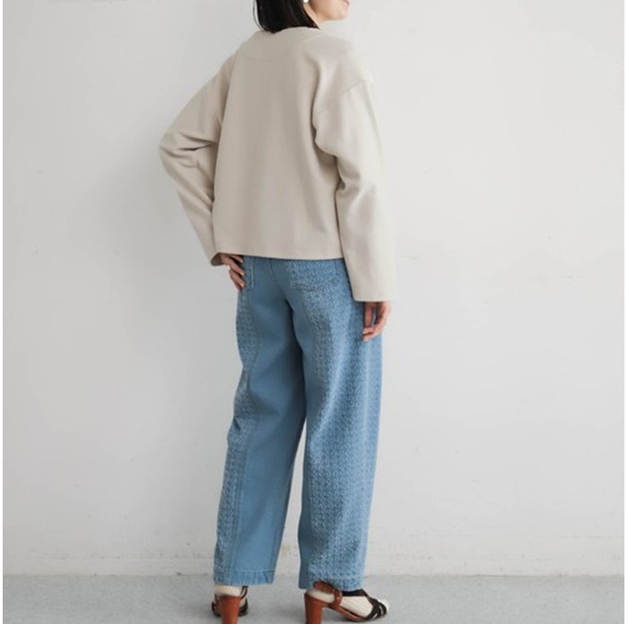 袖と後ろ身頃はしなやかな中肉カットソーで、動きやすく軽やかな着心地です。