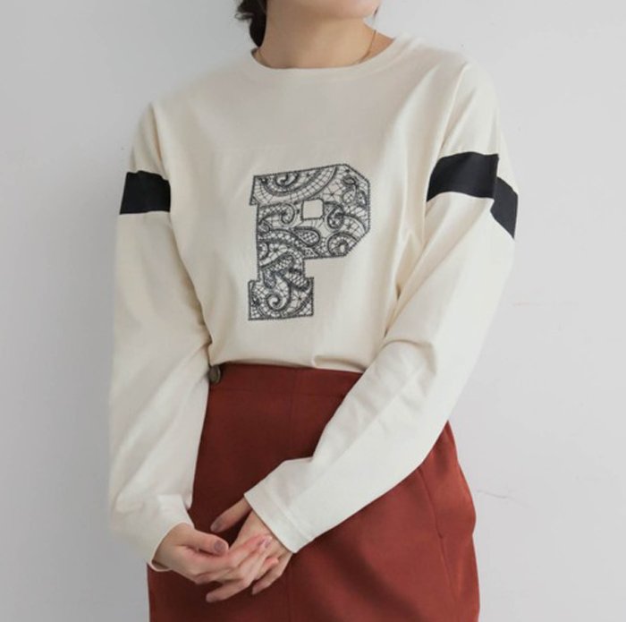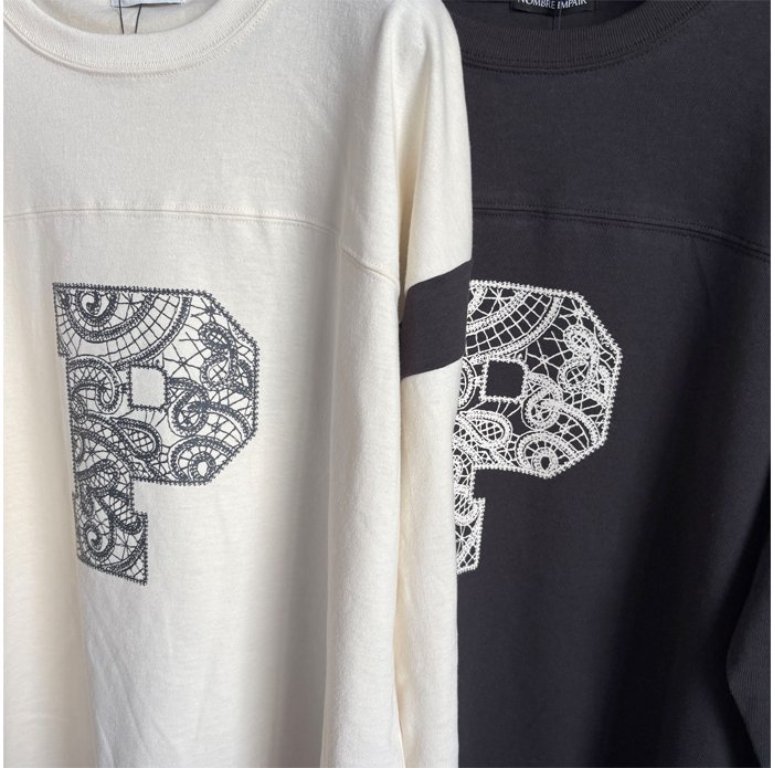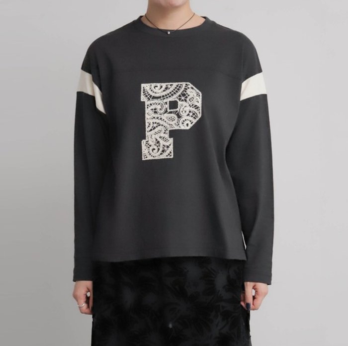 レース風プリントの「P」が目を惹く、ヴィンテージライクなフットボールTシャツ。