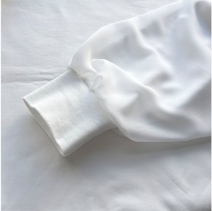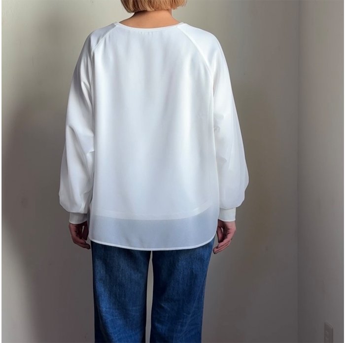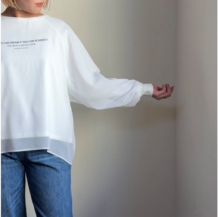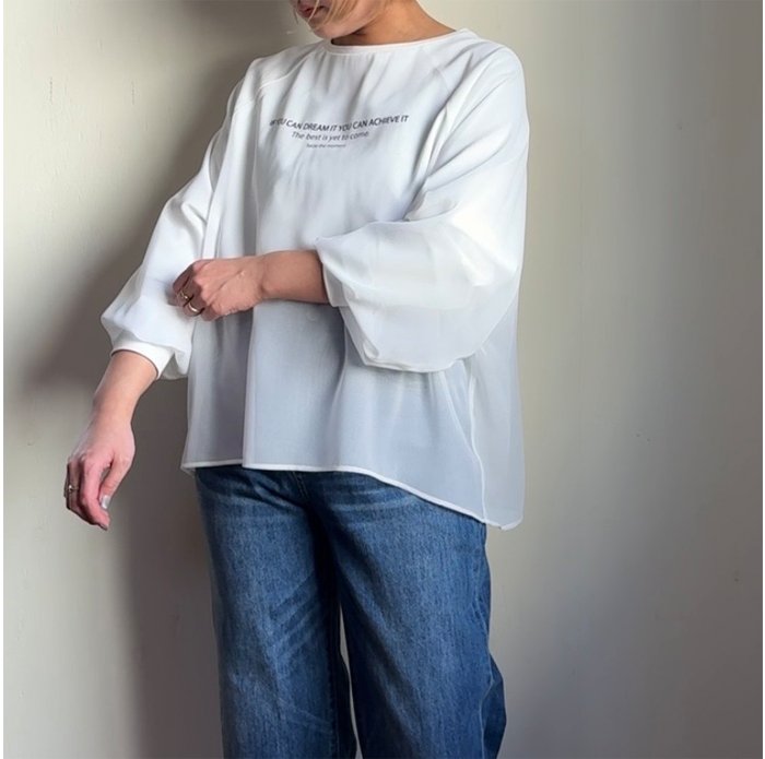 シアー生地で少しボリューム感のある、ふっくら袖がポイントに。