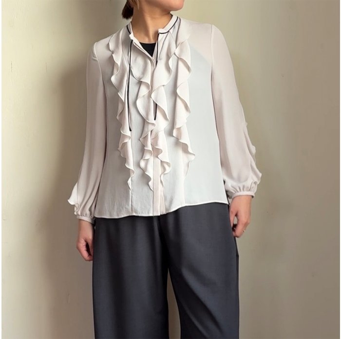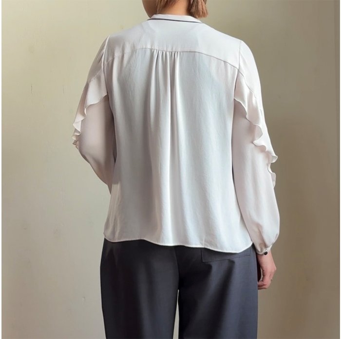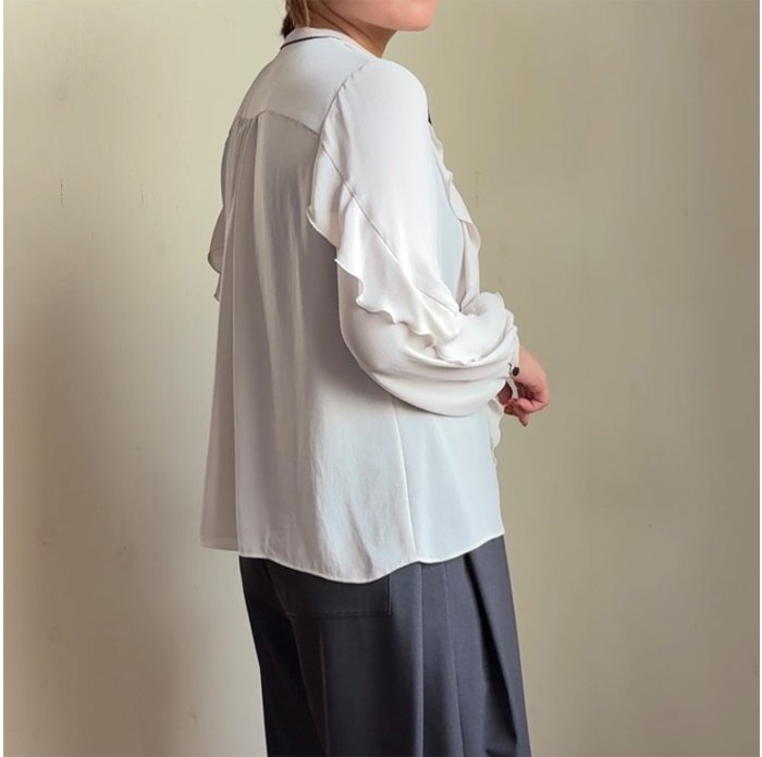 袖後ろ部分にもフリルがあり、程よくボリューム感を出してくれるのでジレやベストとの相性も抜群です◎