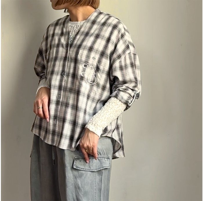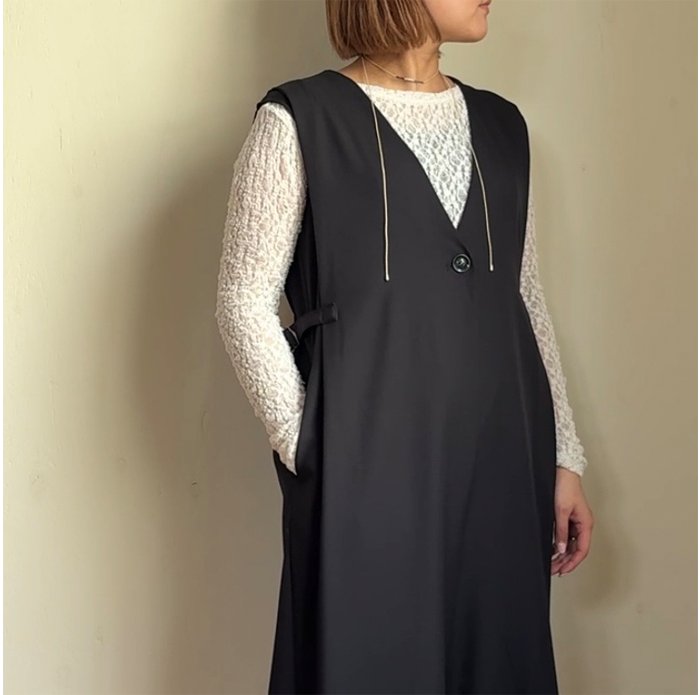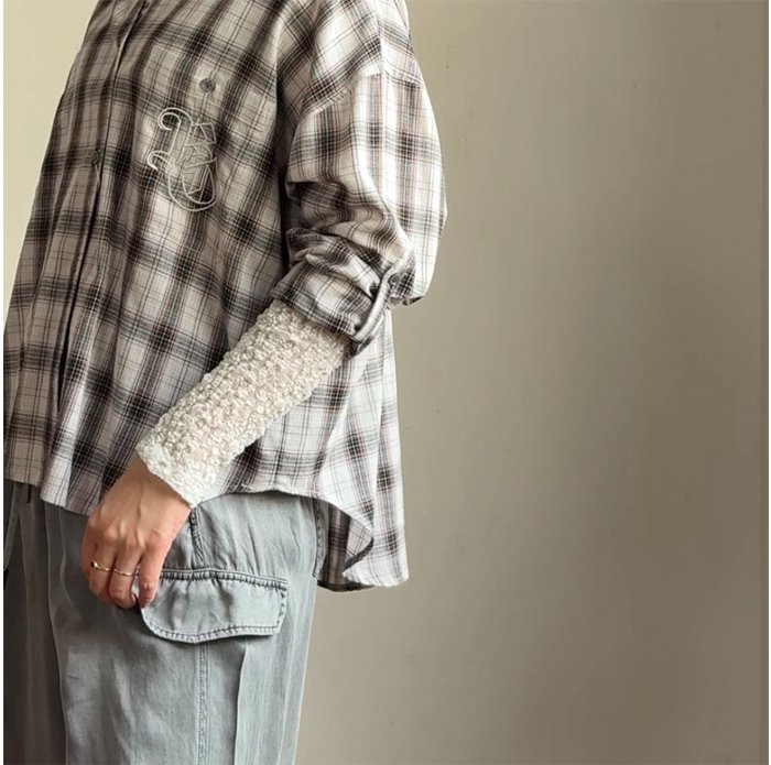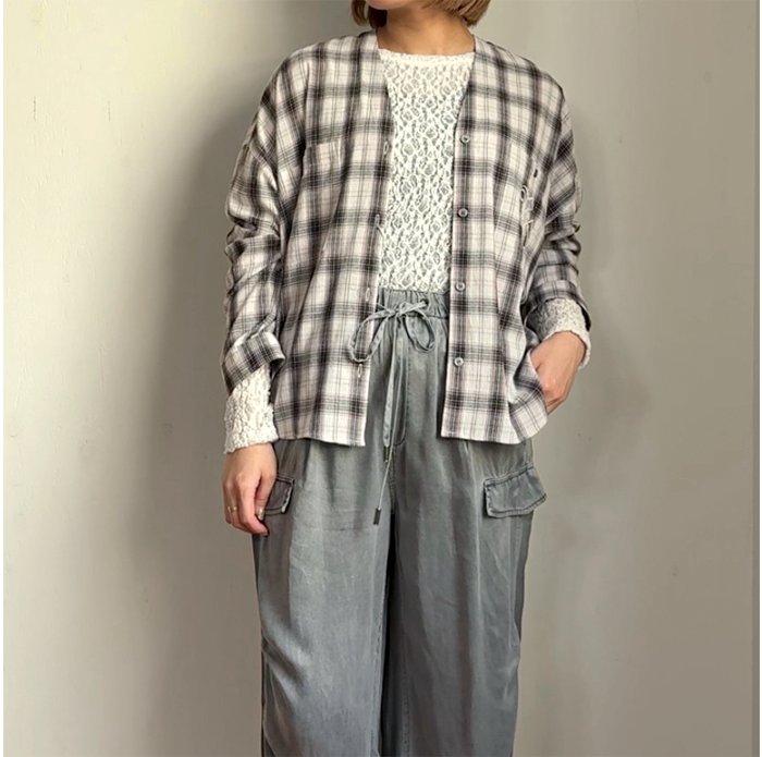 中にカラーの薄手インナーを重ねた旬な着方もおすすめです◎
