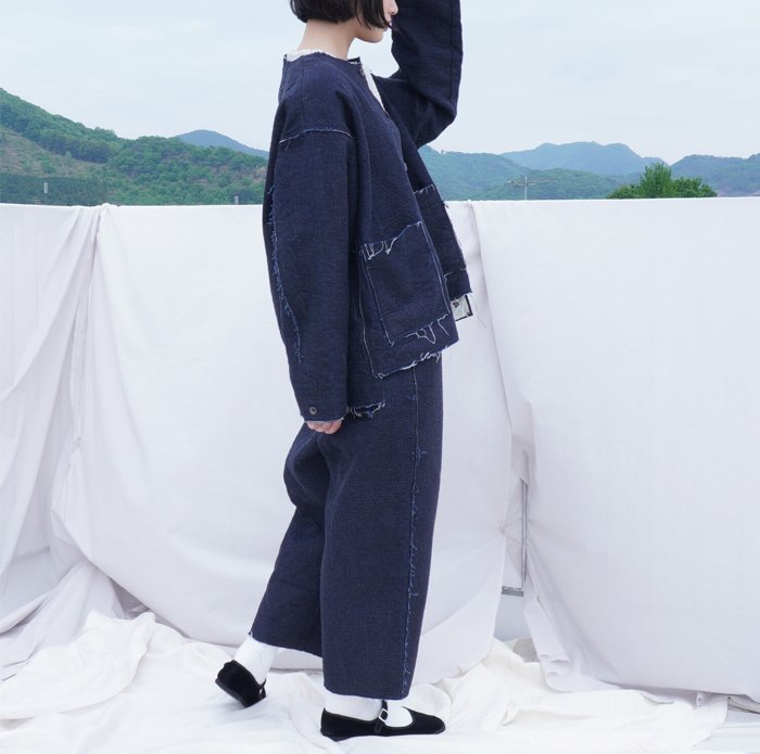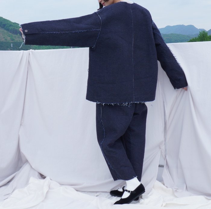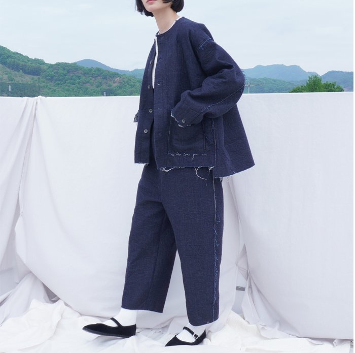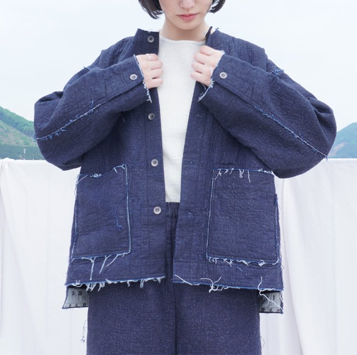 昨年人気だった同シリーズのジャケットを、デザインはそのままに、よりマニッシュな雰囲気でばさりと羽織っていただきたいという思いから、サイズ感を前回より少しオーバーシルエットに作り直しました。