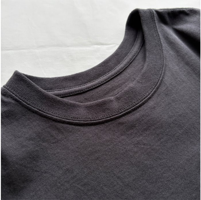 ベースは18/-天竺で、ややボックス型の着やすいシルエットになっています。