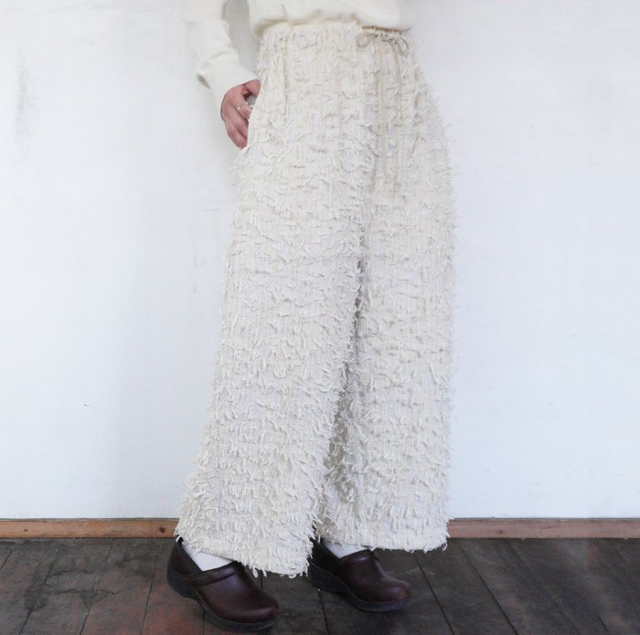 ゆったりとしたサイズ感で、ニットパンツほどカジュアルになりすぎないものをと思いお作りしたワイドパンツです。