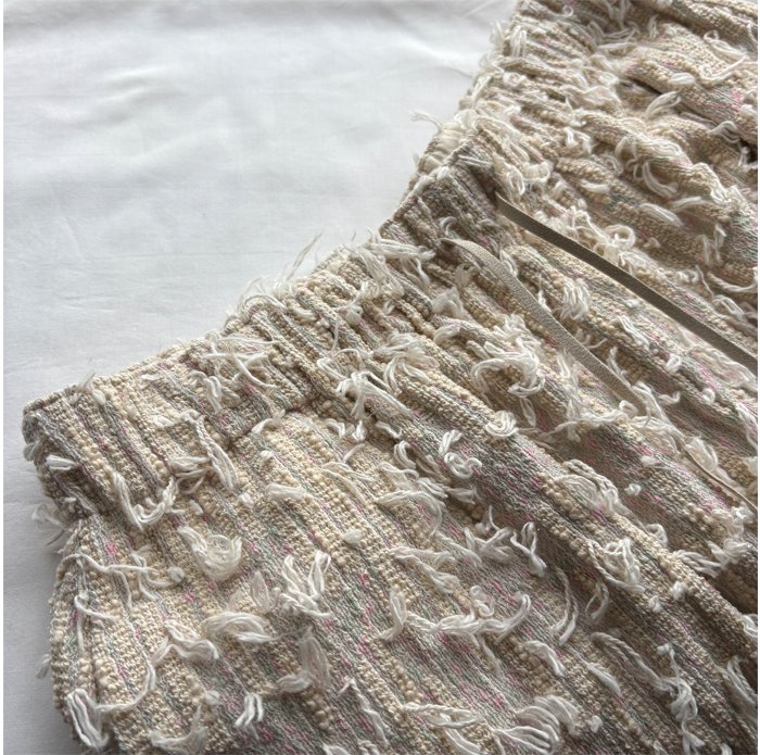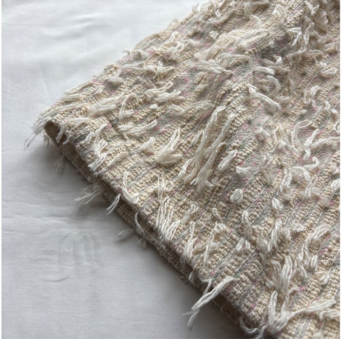 ツイードのニットのような雰囲気のあるカットジャカードのテキスタイル。