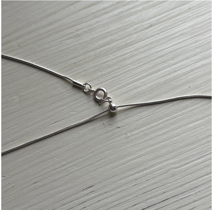 スネークチェーン×ウォーンシルバーのコンビネーションが抜け感をプラスし、カジュアルにもきれいめにも好相性。
