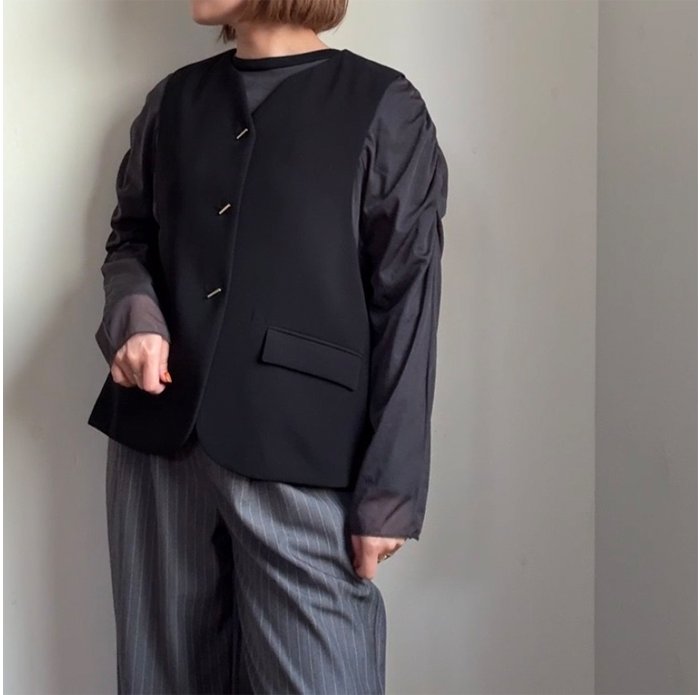 ベルトやジャンパースカートなど、スリーブレスのアイテムと相性抜群です。