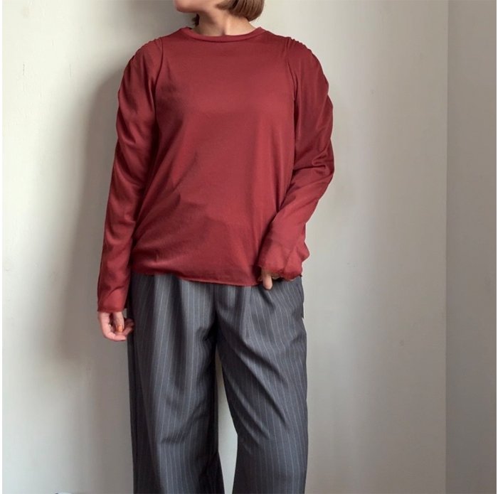 【50%OFF】si-m スィーム シアーレイヤード ギャザースリーブカットソー 250-65018