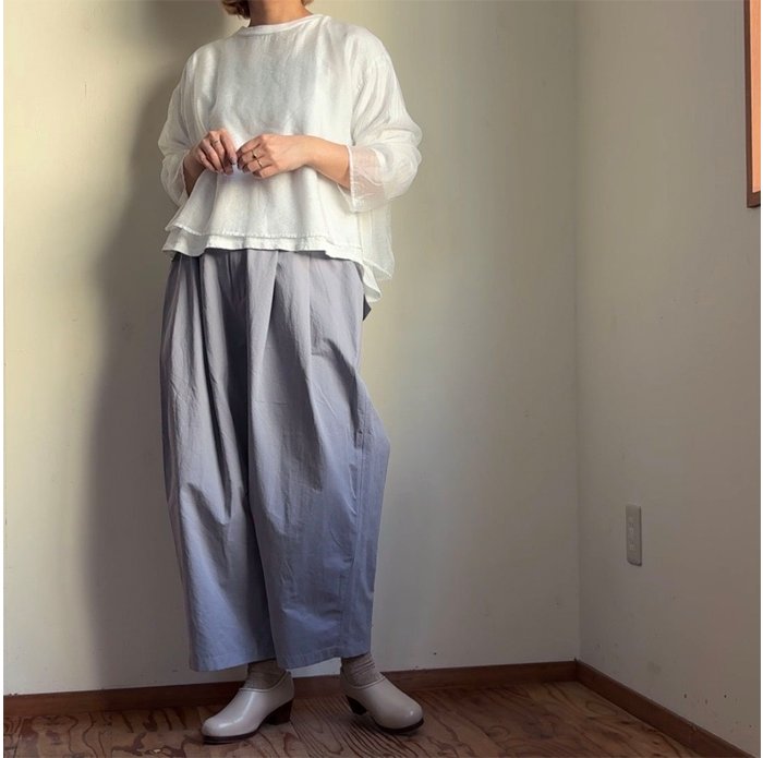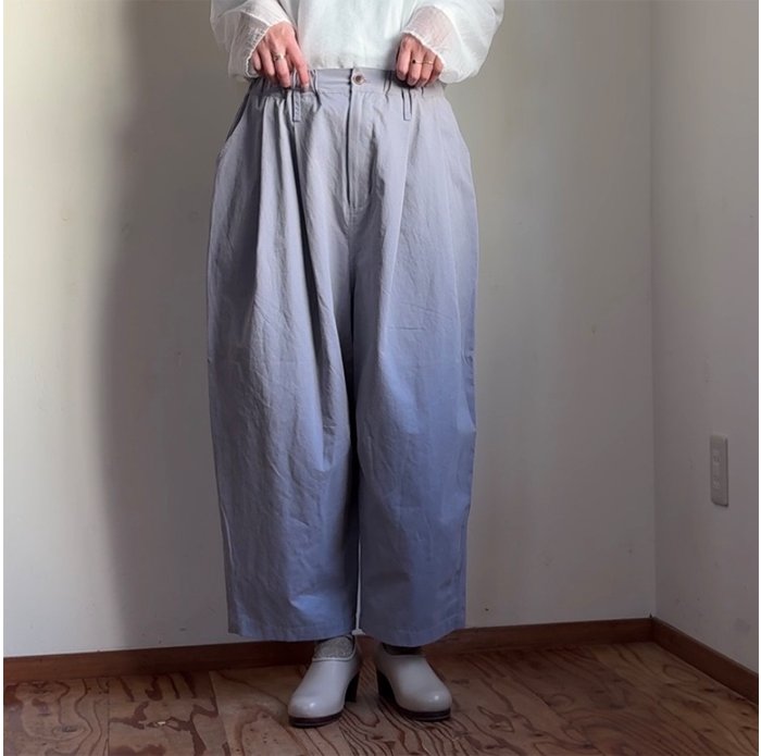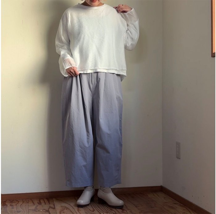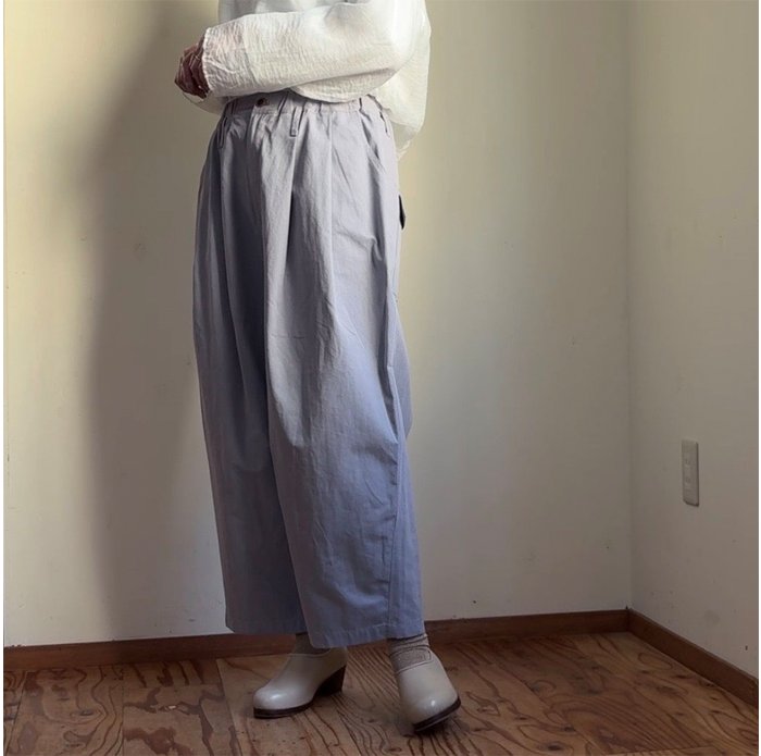 まだ寒さが残る時期から、暖かな春の日差しまで、季節を繋ぐ絶妙な素材感と、リラックスしたシルエットが魅力のワイドパンツ。