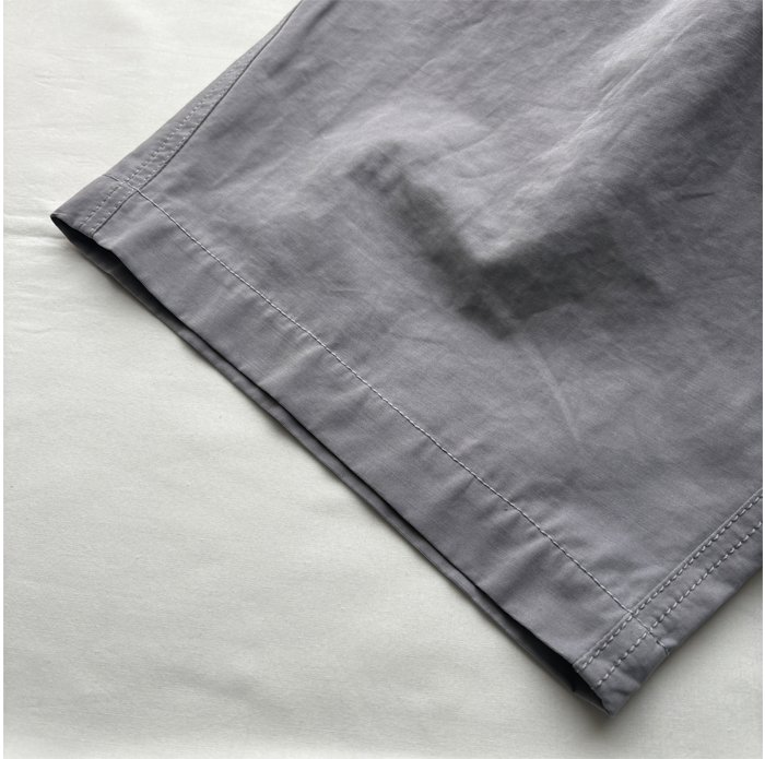 高密度のコットンナイロン素材にピーチ起毛を施し、スウェードのようなふっくらとした質感と独特のマットな光沢感が上品さを持ち合わせています。