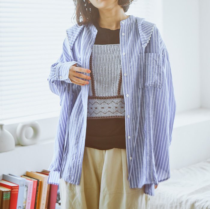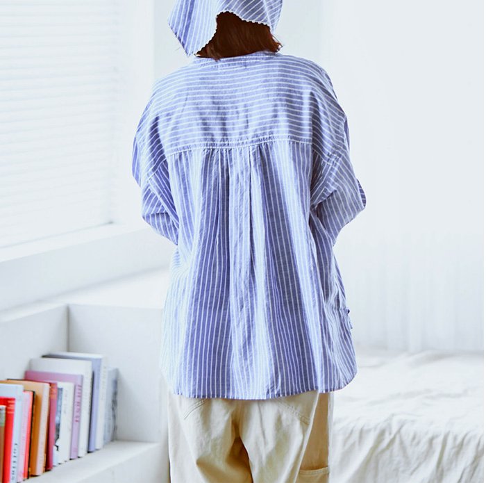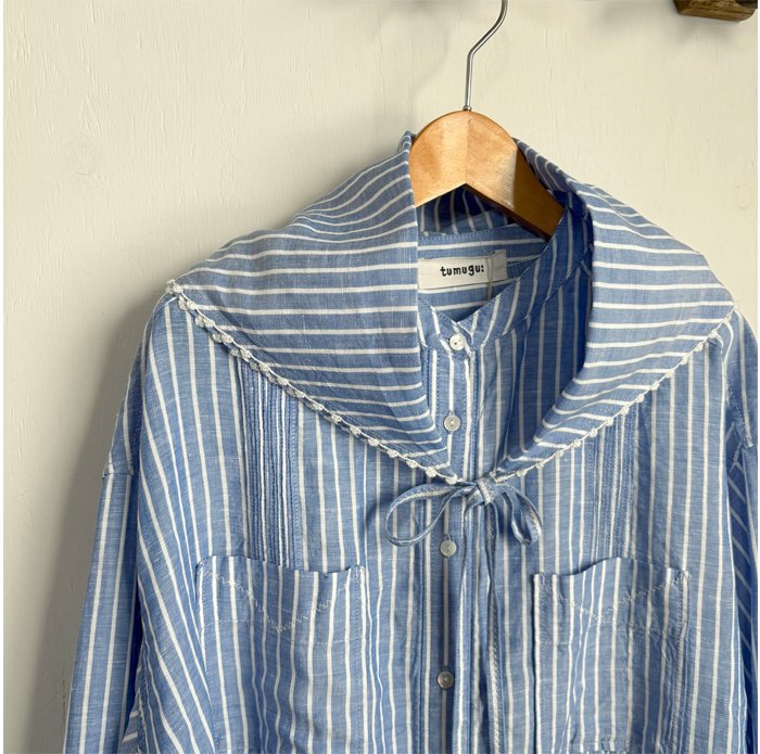 tumugu ツムグ テンセルリネンストライプ チュニックシャツ(スカーフ付き) TB26102-B