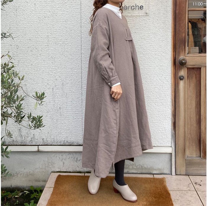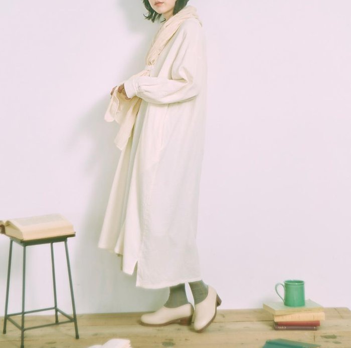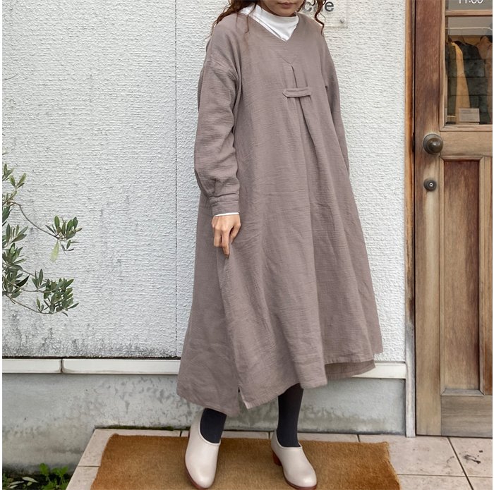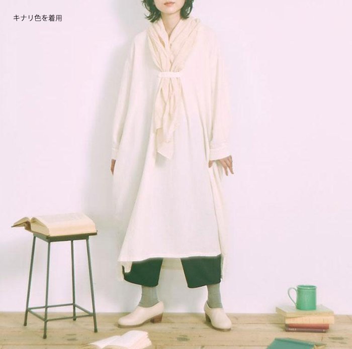 ワンピースはコットン100%素材、ショールはコットンとウールを使用し、吸放湿性と保温性のある快適な素材で仕立てました。
