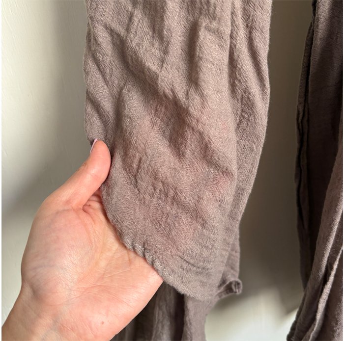近江晒(おうみさらし)という技法を用い、熟練の職人さんがひとつひとつ丁寧にもみこむことで、異なる表情が生まれ味わいのある細かなシワが生まれます。