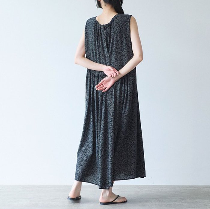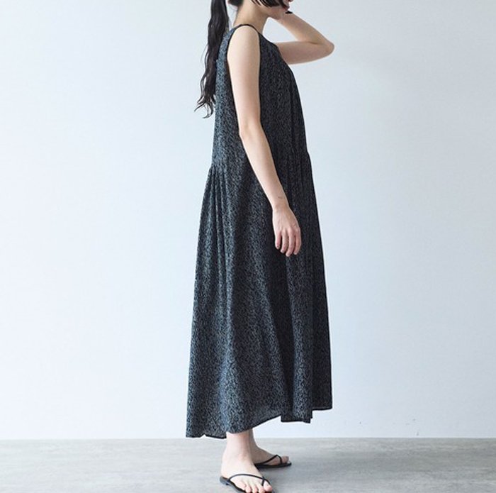 yuni ユニ Rayon/Cupra/cotton print tiered no sleeves ワンピース 17-01-OP-016-26-1
