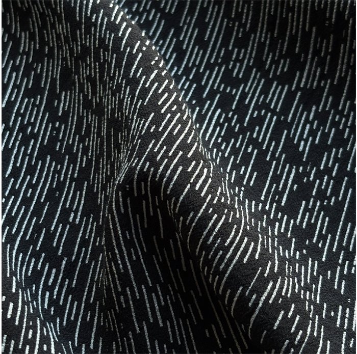レーヨンに綿とキュプラを織り合わせたオリジナル素材は、撚糸の段階から調整を重ねることで、ほどよい柔らかさと上品な微光沢感、そしてわずかなシボ感が溶け合い、豊かな表情を生み出しています。